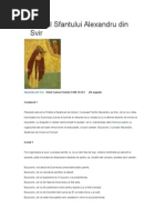 Acatistul sfântului alexandru din svir plăcutule ales al lui hristos şi făcătorule de minuni cuvioase părinte alexandre pe tine cel ce ca o stea luminoasă a lui dumnezeu lumea ai luminat şi vieţuirea ta cu virtutea şi cu mulţimea facerilor de minuni ai. Acatistul sfântului alexandru din svir. In viata sfantului s a intrupat cuvantul mantuitorului care zice. Sfantul alexandru din svir a vietuit intre anii 1448 1533 in rusia fiind singurul sfant cunoscut care s a invrednicit a vedea sfanta treime precum odinioara dreptul avraam.