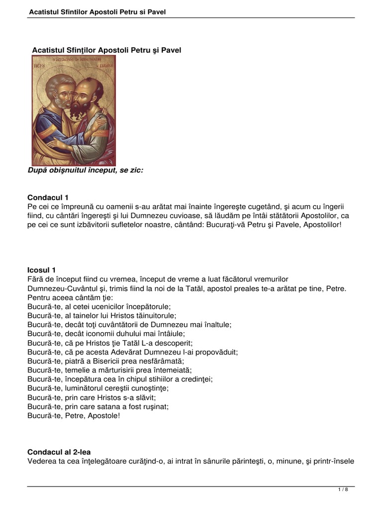 Meditatii la anil liturgic joseph ratzinger papa benedict al xvi lea ne oferă niște meditații profunde cu privire la ceea ce ar trebui să fie viața noastră întru cristos trăită în acord cu marile sărbători ale anului liturgic. Acatistul sfintilor apostoli petru si pavel marian moise. Acatistul sfintilor apostoli petru si pavel 1 4.
