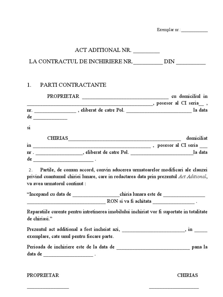 Act Aditional Contract Inchiriere Jkctzpp