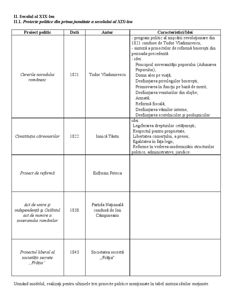 Proiecte Politice Romanesti Sec Xix
