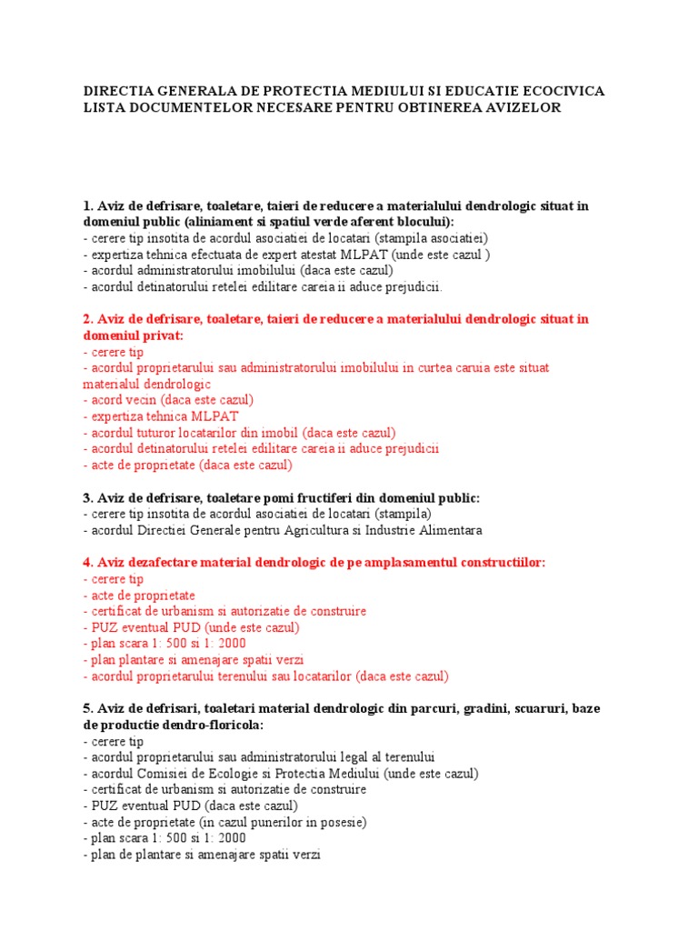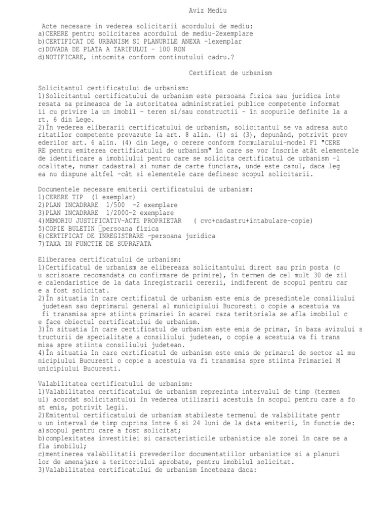 Acte Necesare Aviz Mediu