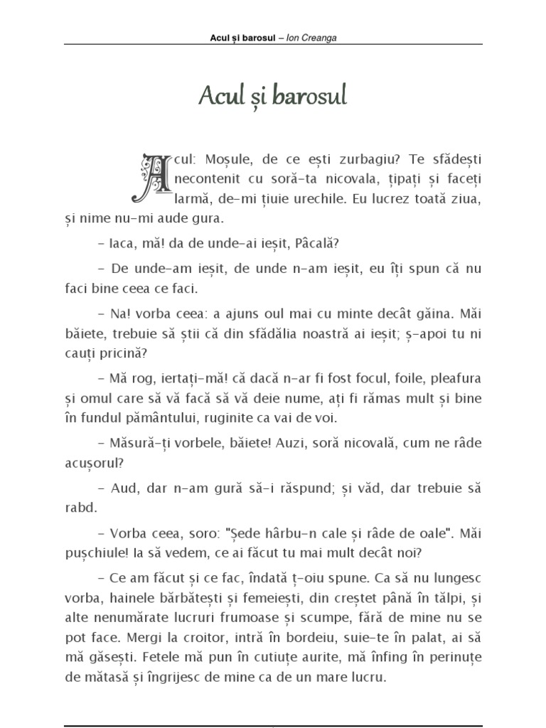 Moşule de ce eşti zurbagiu. Se lauda ca este tinut la mare cinste in cutiute aurite si in pernite de matase. Inapoi 1 2. Acul si barosul de ion creanga continuare de areal la.