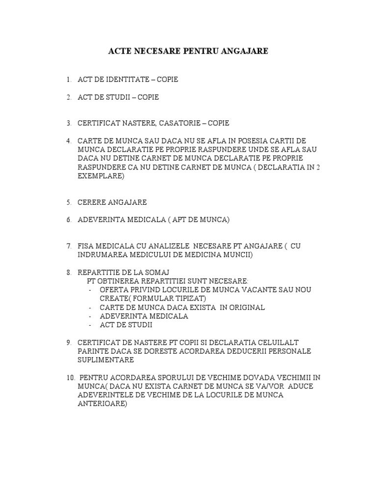 Acte Necesare Pentru Angajare