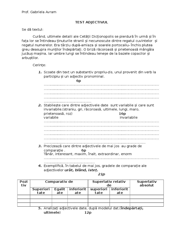 2 puncte 4. Provenite din alte parti de vorbire prin conversiune. C te rog să vorbești deschis. Câte 2 puncte pentru selectarea oricărui cuvânt care conține triftong de exemplu.