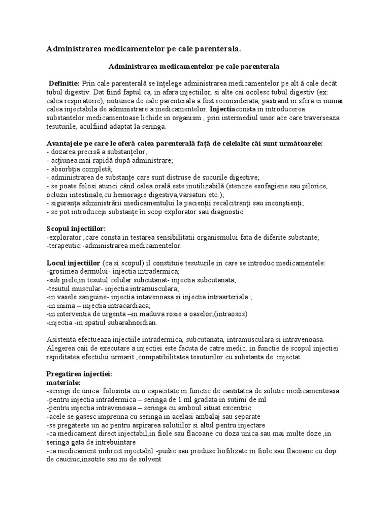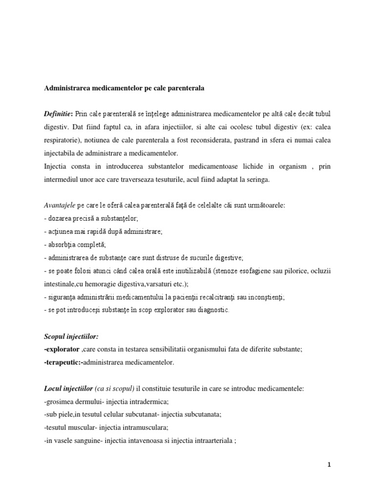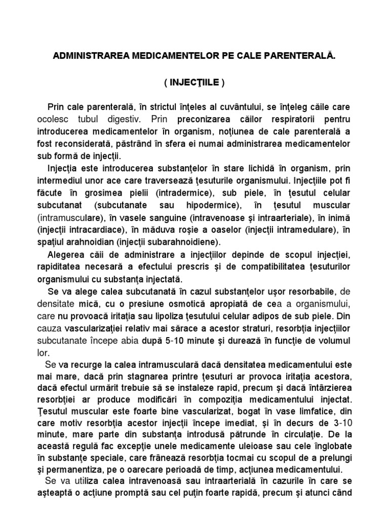 Doc Administrarea Medicamentelor Pe Cale Parenterala Iordache Anamaria Academia Edu