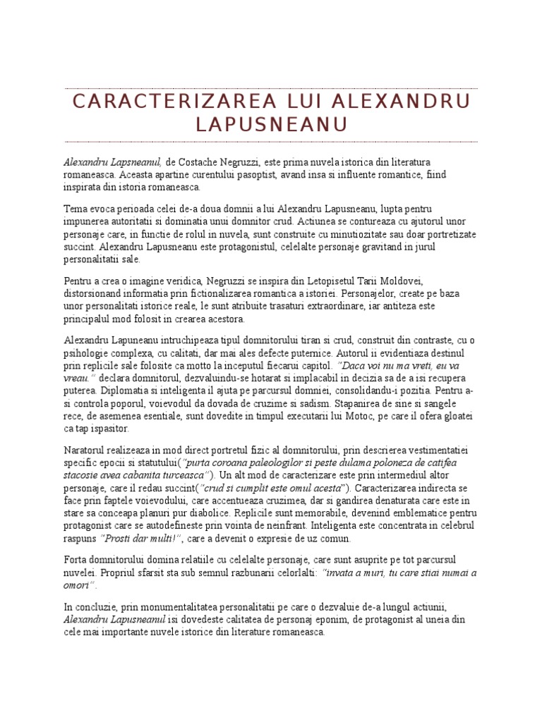 Este o nuvela deoarece este o specie epica in proza cu o constructie riguroasa avand un fir narativ central. Alexandru lăpușneanul personaj principal al nuvelei este o creație de factură romantică fiind puternic individualizat și pus în situații excepționale omorârea boierilor etc. Completezi informațiile din formularul de comandă și imediat după aceea vei primi prin email link ul de descărcare. Se observa concizia intrigii tendinta de obiectivare a perspectivei narative.