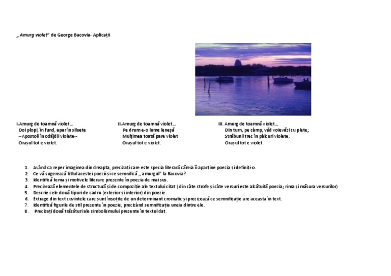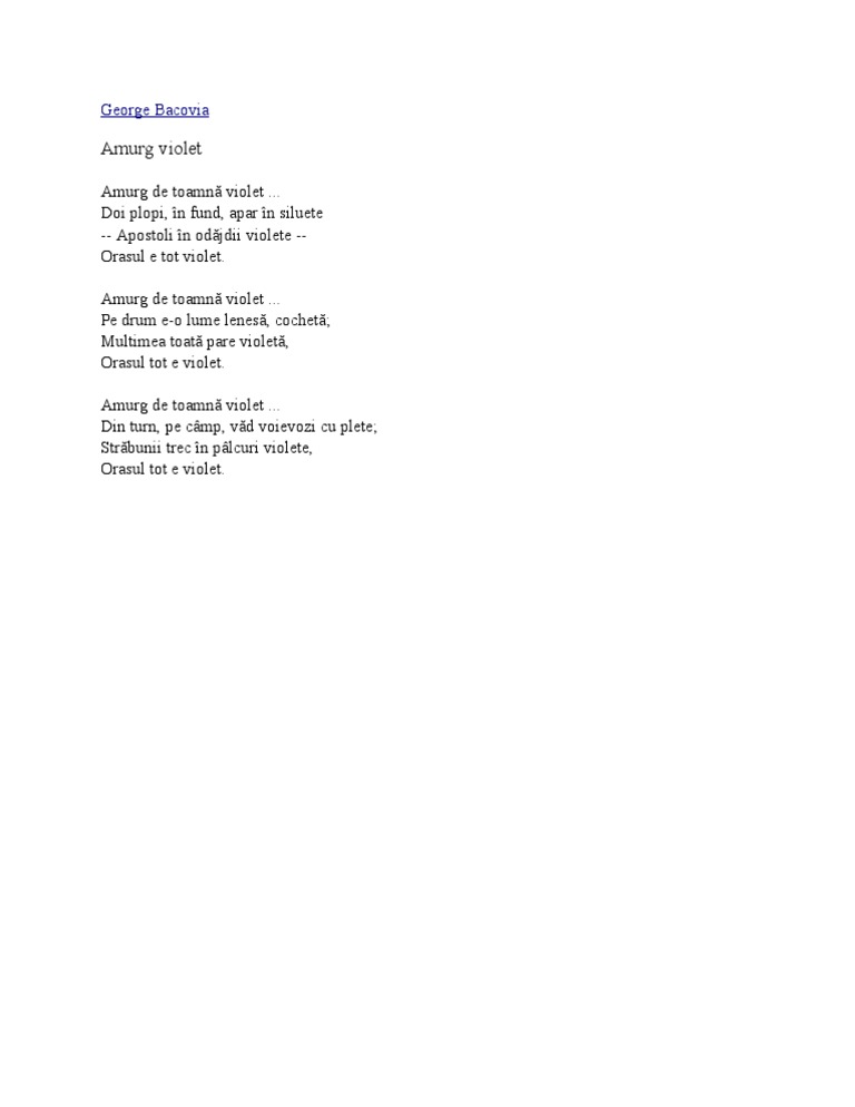Amurg de toamnă violet. George bacovia 1881 1957. Din turn pe câmp văd voievozi cu plete. în 1898 îşi pune pe note câteva poezii precum şi altele de mihai eminescu si.