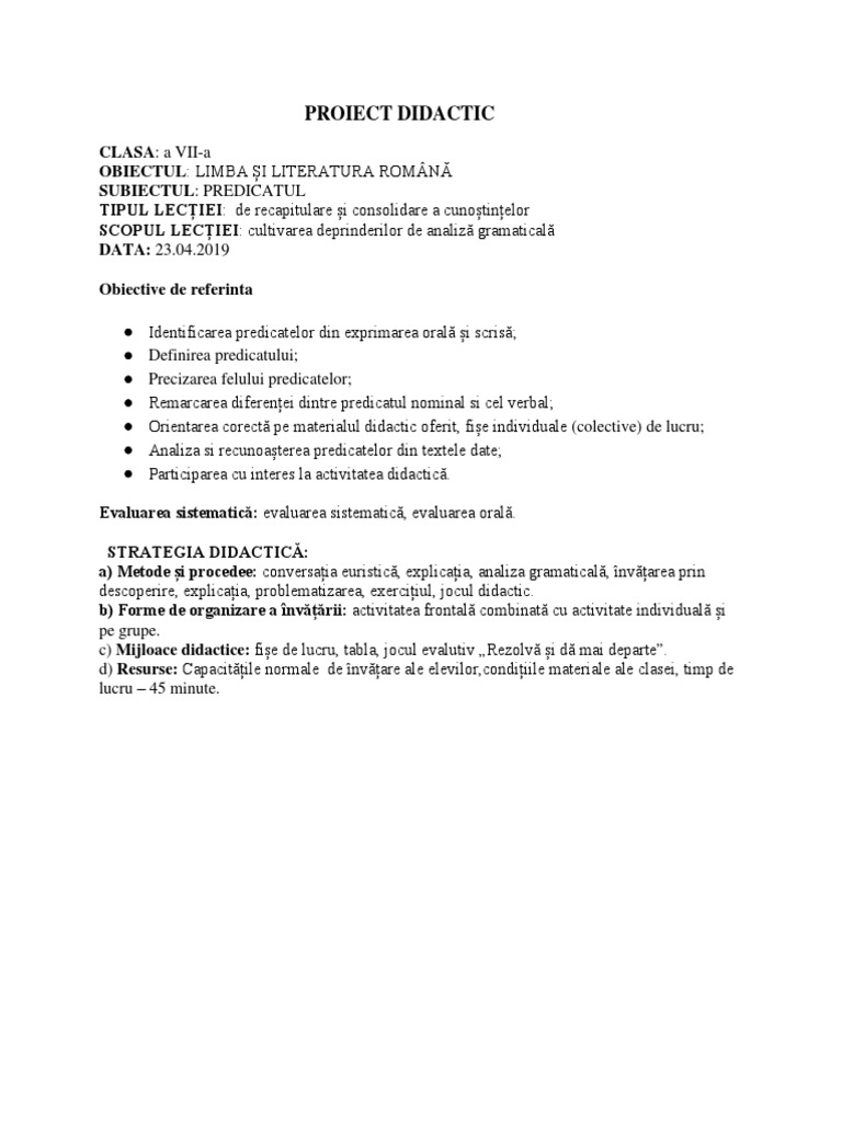 Analizati partile de vorbire prin care se exprima predicatele verbale identificate. Elevii rezolva exercitiile din fisa nr. Si partile de vorbire prin care se exprima. Asigurarea retentiei si a transferului. Intarziasem pe vreme rea intr un local de noapte bucurestean si cazuse peste mine un cunoscut de prin scoala am fost ascultat cu toata luarea aminte.