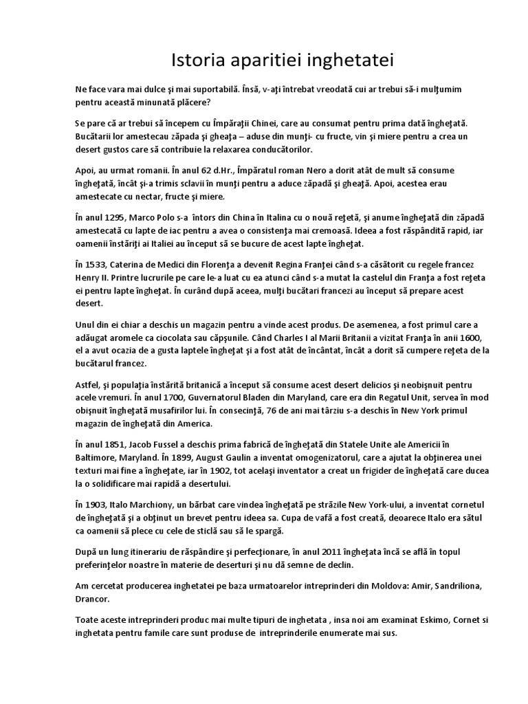 Istoria Aparitiei Inghetatei