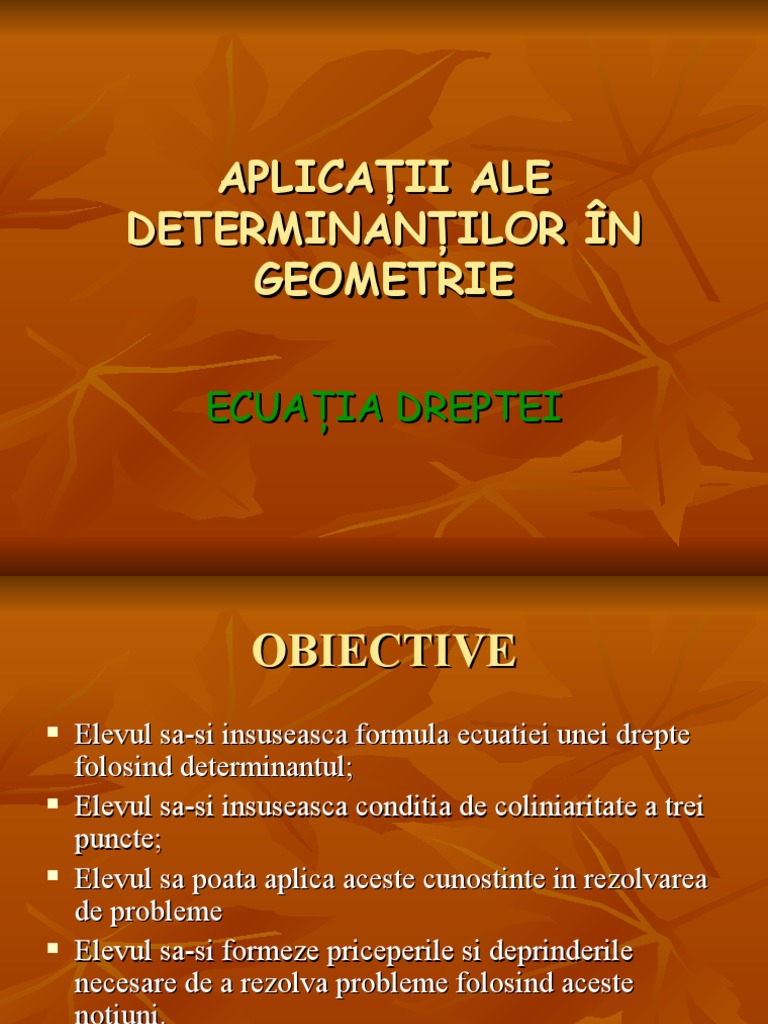 0 stele 0 review uri. Aplicaţii ale determinanţilor în geometria analitică. Ecuaţia dreptei ce trece prin punctele. Să prezinte in mod coerent solutia unei probleme exercitiu coreland diverse modalitati de exprimare.