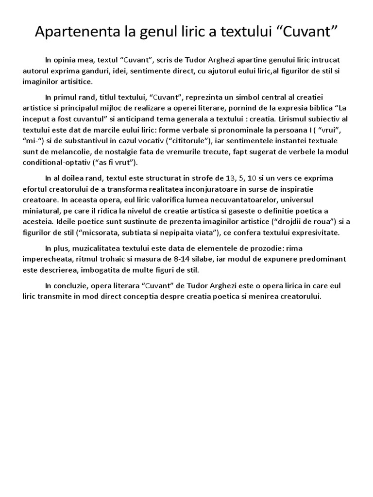 în compunerea ta trebuie. Tresărind în cercuri albe el cutremură o barcă. Un model care poate fi urmat in special de elevii clasei a viii a pentru argumentarea ca un text apartine genului liric. Semnificația titlului text liric.